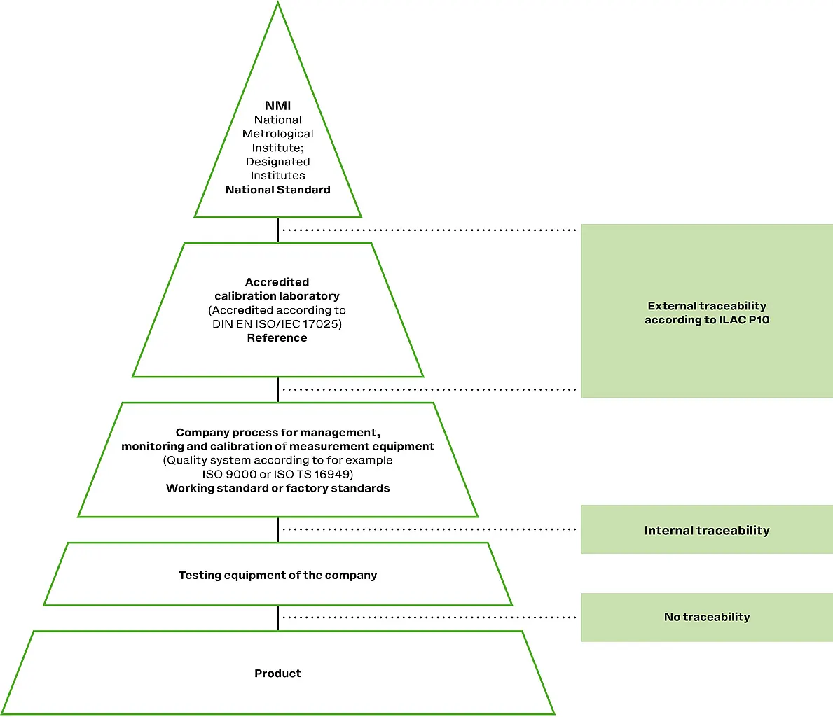 With a traceable calibration, there is an unbroken measurement chain up to a national standard or standard and thus to the SI base units. The advantage of measuring instruments that are traceable to national standards (and therefore usually also to international standards) is the worldwide comparability of the measurement results. The specification of measurement uncertainties, the determination of which includes the measurement process, is particularly important.
