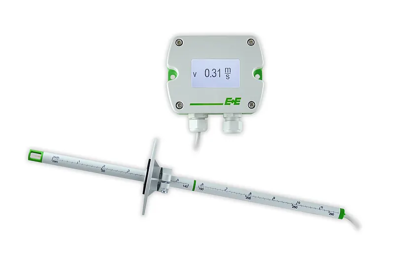 The air velocity transmitter is available for wall or duct mounting as well as with remote probe. The large, flush-mounted LCD display with backlight is 180° rotatable and ensures optimal readability of the measured data.